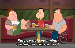 Peter, would you mind putting on some shoes? Oh, you mean foot prisons? Yes, I would.