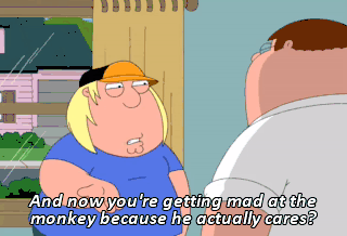 And now you're getting mad at the monkey because he actually cares? Screw you! You are the worst dad in the world, and I hate you!