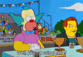 Well, you-- A urinal cake! You, sir, have crossed the line. Oy!