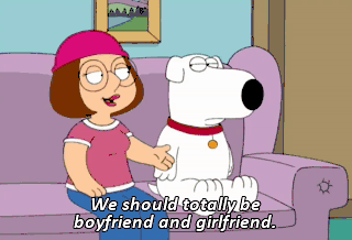 We should totally be boyfriend and girlfriend. Well, Meg... You know what's strange? I think I might be gay. I saw this penis on the internet today and I thought to myself, "Well, that's... That's just fine."