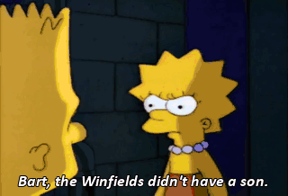 Bart, the Winfields didn't have a son. See that sock over there? It was his only friend. Hello, Lisa. Here in the dark, you won't need those eyes.