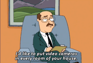 I'd like to put video cameras in every room of your house, so that I can observe your uncensored behavior. Wow! Just like that show, Big Brother. Ex-Except somebody'll be watching.