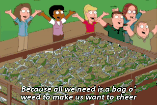 Because all we need is a bag o' weed to make us want to cheer And one, two A bag o' weed, a bag o' weed Oh, everything is better with a bag o' weed