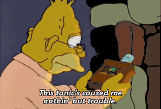 This tonic's caused me nothin' but trouble. You've done all the damage you're gonna do! Oh, nuts! Dad! Son!