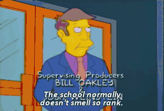 The school normally doesn't smell so rank. Ah, washbasin fresh. That funk must be coming from one of the classrooms. Ugh! Ah, poor fellow, crushed by his own water bottle.