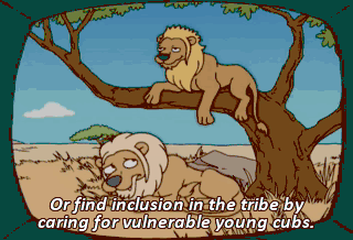Or find inclusion in the tribe by caring for vulnerable young cubs.