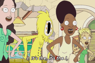 J, It's the, it's the J, J, It's the Rick dance J, J, It's the, it's the J, J, It's the Rick dance J, Slow Mobius, hit me with the clock beam! J, It's the, it's the J, J, It's the Rick dance J,