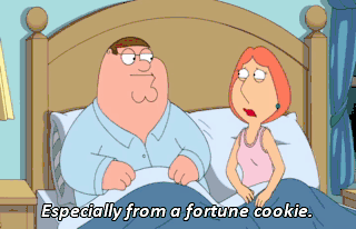 Especially from a fortune cookie. What does it say, Peter? Just something about perseverance. What does yours say? It says I'm very creative.