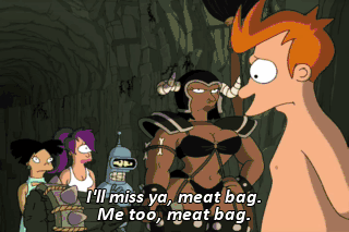 I'll miss ya, meat bag. Me too, meat bag.
