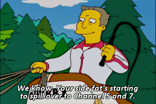 We know. Your side fat's starting to spill over to Channel 5 and 7.