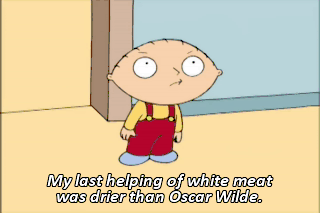 My last helping of white meat was drier than Oscar Wilde.