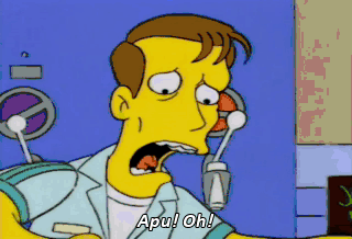Apu! Oh! The searing kiss of hot lead. How I've missed you. I mean, I think I'm dying. - Uhh. - Oy.