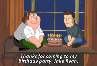 Thanks for coming to my birthday party, Jake Ryan. Thanks for having me at your birthday party, Peter. Make a wish. It's already come true. Here's your present. No, Jake! Not like this! (PETER SCREAMS)