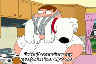 Even if sometimes my mustache has Alpo gas. (FARTS) Mustache fart.