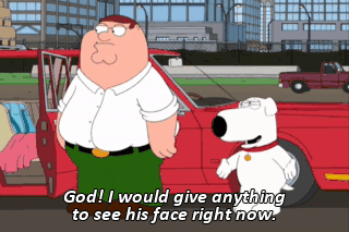 God! I would give anything to see his face right now. He's probably all, like, "Where the deuce is everyone?" Well, I can't really do a good Stewie.