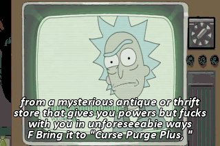 from a mysterious antique or thrift store that gives you powers but fucks with you in unforeseeabie ways F Bring it to "Curse Purge Plus, "