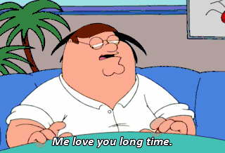 Me love you long time. Gosh, I'd like to help, peter. But I've gotta go out in the hall and chew on my ass for 5 minutes. Oh, Peter, I invited Joe and Bonnie to your game on Saturday.