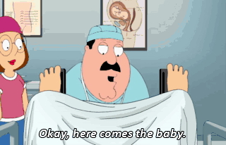 Okay, here comes the baby. Bloody hell! It's a boy. (ALL CHEER) Oh, thank God. He's so beautiful. Mrs. Griffin, your husband's standing right here. What should we name him? I kind of like Brian's name. Stewie.