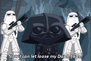 Now I can let loose my Darth farts. (FARTS) (AIR HISSING) (FARTS) (AIR HISSING) Artoo, get her ready for takeoff.