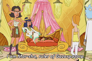 I am Mar-sha, ruler of Gazorpazorp. I am here if you need to talk. - What is this place? - Paradise.