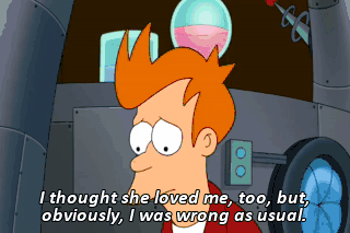 I thought she loved me, too, but, obviously, I was wrong as usual. Wrong again. You were right. Leela? Leela-Leela? Leela-Leela. I've been thinking, Fry. If I lost you, I don't think I could stand it, either.