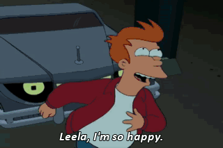 Leela, I'm so happy. Oh, thanks, Bender. Hey, too tight, too tight!