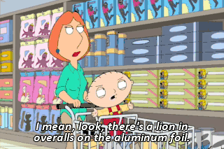 I mean, look, there's a lion in overalls on the aluminum foil.