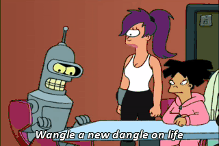 Wangle a new dangle on life No, Bender! The other way! I like him better this way. I'm sad now.