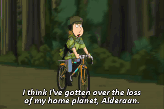 I think I've gotten over the loss of my home planet, Alderaan. I've finally moved on. (BOTH GRUNTING)
