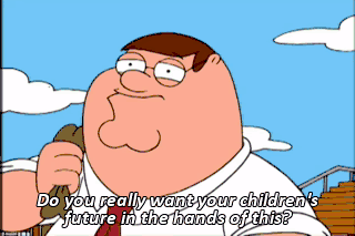 Do you really want your children's future in the hands of this? I know I don't. Paid for by the Peter Griffin for School Board President Committee. Sorry, Lois. "Lewd", "obscene", and "a little blurry",