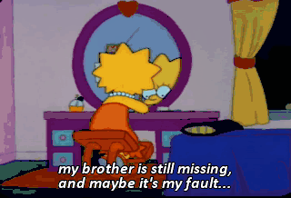 my brother is still missing, and maybe it's my fault... because I failed to take his abuse with good humor. I miss him so much already... that I don't... know-- Hey, Lis. Lisa.