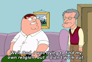 Well, Dad, I was trying to find my own religion, but it didn't work out.