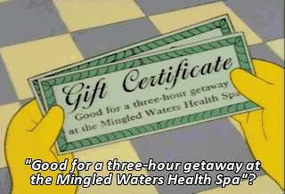 "Good for a three-hour getaway at the Mingled Waters Health Spa"? Mineral bath? Facial massage? How did you afford these? Oh, never you mind. What advantages does this motorcar have...