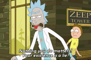 Nothing you do matters! Your existence is a lie! If that were really true, then... I'm here to see Ron Mendleson. Third floor. Would you like to go to dinnerwith -- Uh, no.
