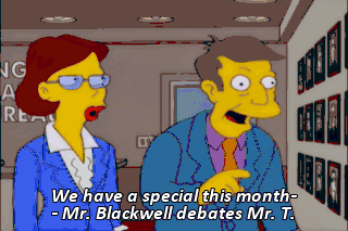 We have a special this month-- Mr. Blackwell debates Mr. T.