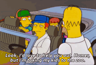Look, I'd love to help you out, Homer, but I'm taking my kids to the zoo.