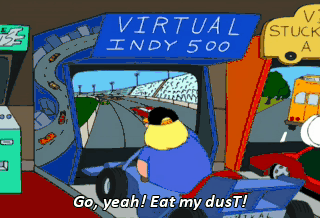 Go, yeah! Eat my dusT! Come on, move it! Come on! Oh, man! Chris, this place is great. Hey, Pull over, you bastard! Aw, Man. Hey, Dad, they even got games in the bathroom.