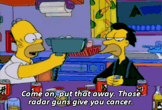 Come on, put that away. Those radar guns give you cancer. All the more reason to hurry up. Hey, what could be going 100 miles per--