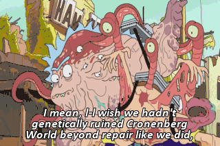 I mean, l-l wish we hadn't genetically ruined Cronenberg World beyond repair like we did,