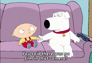 You said there was no film in that camera! Come on, Stewie. It's time to change your diaper. Uh, Mind if I watch?
