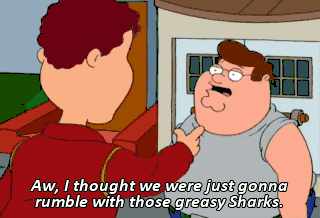Aw, I thought we were just gonna rumble with those greasy Sharks. Not without 7 years of ballet and 2 of jazz tap, we're not.