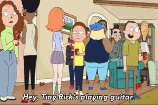 Hey, Tiny Rick's playing guitar.