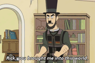 Rick, you brought me into this world, a suffering abomination tortured by the duality of its being. But I shall finally know peace when I watch the life drain from yourwretched body!
