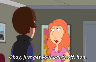 Okay, just get your pants off, hon.