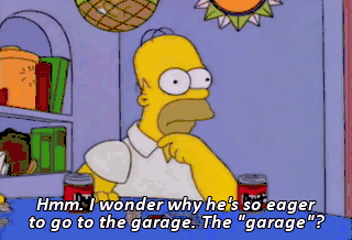 Hmm. I wonder why he's so eager to go to the garage. The "garage"? Hey, fellas, the "garage." Well, ooh, la-di-da, Mr. Frenchman.