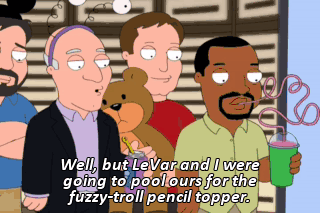 Well, but LeVar and I were going to pool ours for the fuzzy-troll pencil topper. Oh, yeah? You gonna share that? Yeah. We were gonna share it.
