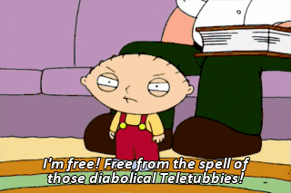I'm free! Free from the spell of those diabolical Teletubbies! Thank you. When the world is mine, your death shall be quick and painleSS.