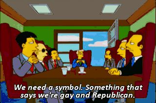 We need a symbol. Something that says we're gay and Republican. A little on the nose, don't you think? Excuse me. We just came to get our balloon.