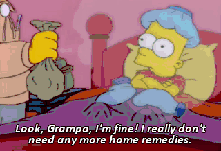 Look, Grampa, I'm fine! I really don't need any more home remedies. Oral thermometer, my eye! Think warm thoughts, boy, 'cause this is mighty cold.