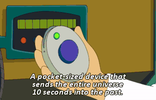 A pocket-sized device that sends the entire universe 10 seconds into the past. I will now demonstrate. Joy Juice, hot. Pretty cool, eh? I'm over here where I was 10 seconds ago.